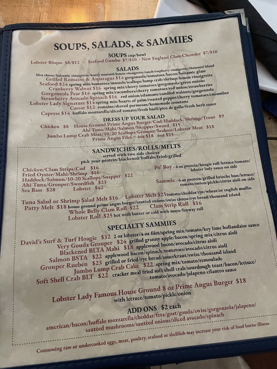 Lobster Lady Seafood Market in Cape Coral offers a vibrant menu that celebrates fresh, high-quality seafood with an inviting, lively atmosphere. The Raw Bar shines with shooters featuring spiced rims and classic accompaniments like Worcestershire and clamato, delivering a bold, refreshing start. Dinner salads such as the Grilled Romaine & Asparagus with gorgonzola and bacon provide a smoky, tangy contrast, while the Seafood Salad delights with mussels, scallops, jumbo lump crab, and shrimp, tossed in a bright lemon vinaigrette.
